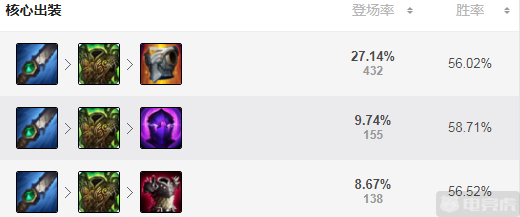 猪妹在此前版本喜获加强,她的W技能有了更高的伤害,同时熔渣巨人打野刀对野怪能造成更多的伤害,也直接buff了猪妹。在9.11版本中,猪妹的胜率高达52.86%位居打野位第二,登场率也有着10.88%位列第四,是非常强势的T1打野。