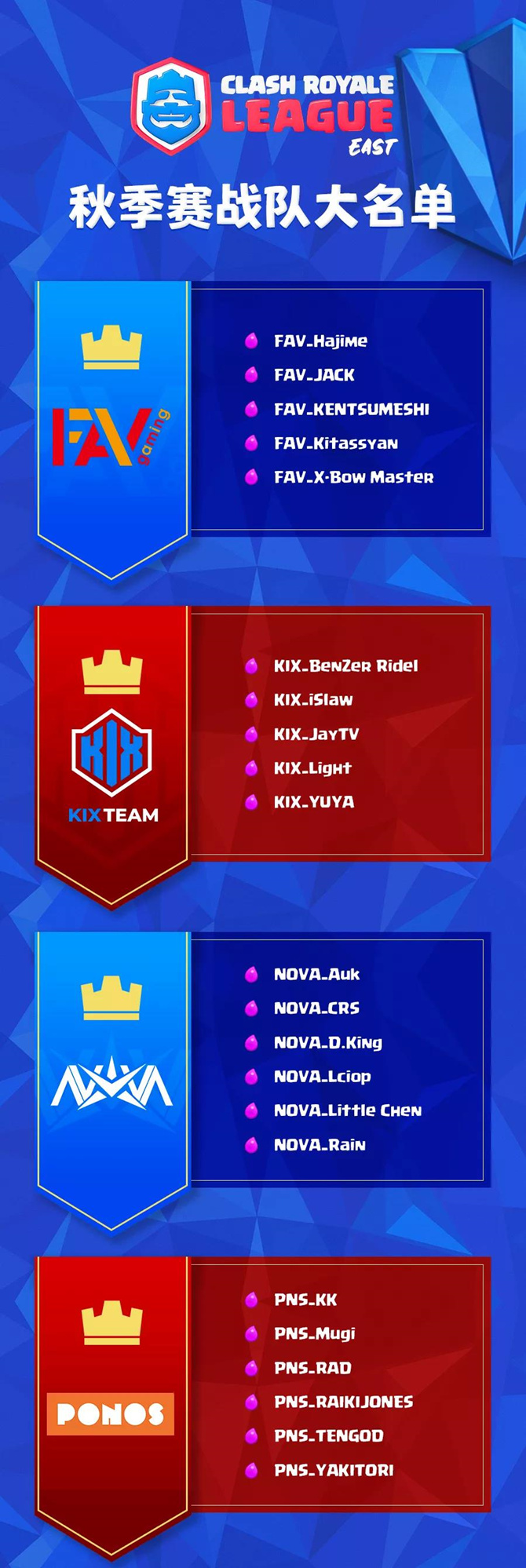 除了3支中国大陆战队外,其他战队的转会同样是爆点满满。卫冕冠军FAV在保留核心班底的情况下,请来了曾登顶世界第一、有着“弩王”称号的Hajime出山,实力再进一步。另一支日本豪门PONOS,也在殿军阵容的基础上,空降了16岁天才少年、多次登顶天梯第一的日本神童Mugi,战斗力再次升级。而上赛季季军KIX也没闲着,在连签Light和YUYA两位天梯强人后,KIX的目标同样直指冠军。而两支以韩国选手为班底的战队TIMING和TALON则选择继续打磨新人,以上赛季一样的“全韩班”继续征战秋季赛。在经历一个热闹的休赛期后,多支全明星战队已经蓄势待发,新赛季场场都将是豪门盛宴。