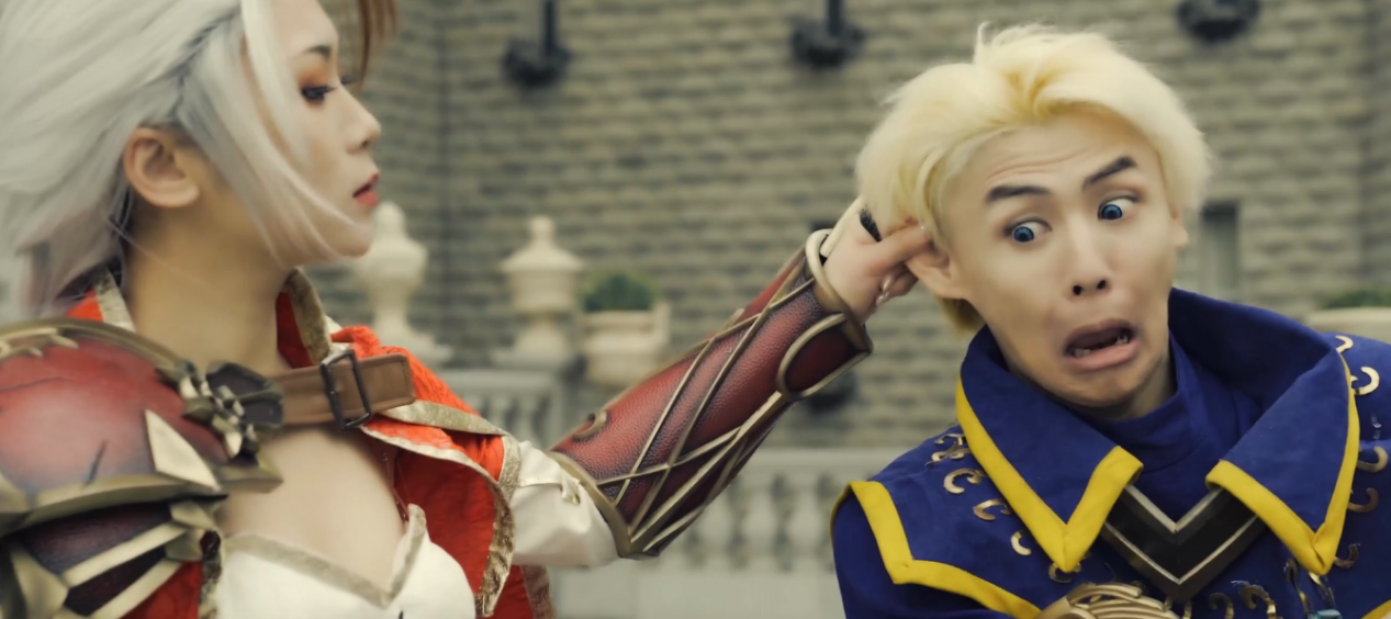第一阶段是新生入学,此阶段主要通过主角在通灵学园中漫步,更像是对通灵学园的一种介绍。在这过程中,一直在老皮视频中扮演安度因和吉安娜的两位cos都有出镜,吉安娜捏住安度因的耳朵更是被网友笑称为给视频注入灵魂。
