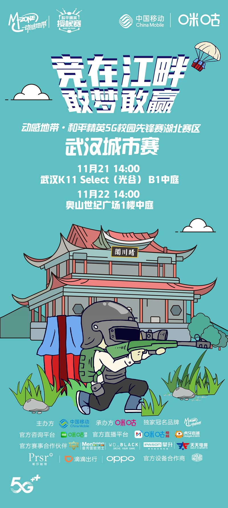 动感地带·和平精英5G校园先锋赛再次引发武汉大学生电竞爱好者们踊跃报名,加入这场湖北电竞盛会。位于繁华商圈的比赛现场还会设置各类互动打卡和抽奖福利活动,大赛还联合OPPO、西部数据、酷冷至尊、曼秀雷敦、攀升电脑、天天电竞、滴滴出行、虎牙直播等多家品牌为观众和参赛者准备了丰厚的赛事奖品。届时现场还会有精彩的舞台表演和Coser合影等活动,为年轻人奉上一场电竞盛典。