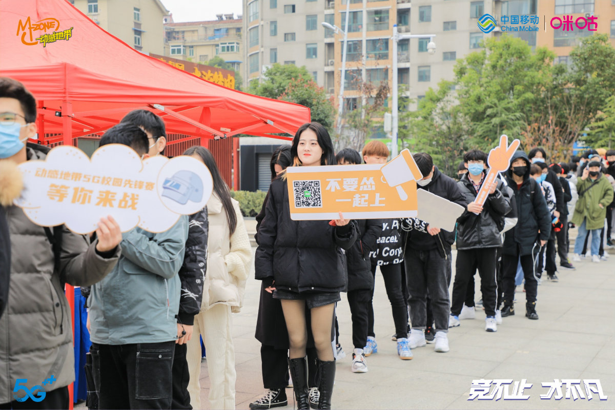 光来现场满足视觉享受怎么行?作为本次大赛的主办方,安徽移动也为所有到场观赛的玩家朋友们准备了专项福利;结合动感地带文字牌等氛围物料,进行合影拍照分享,即可解锁独家宠粉福利,咪咕快游月卡会员、5G终端购机直降券等。