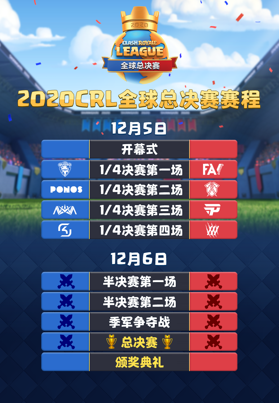 作为年底三连总决赛的最后一站,CRL全球总决赛将为今年的Supercell电竞热潮画上一个圆满的句号。在前两周结束的荒野乱斗和部落冲突的全球总决赛中,中国战队均无缘总冠军,在中国人实力最强劲的皇室战争项目上,NOVA和W.EDGM能否借助主场之利,在这个冬天再次为CN电竞强势正名?这个周末每天中午12点,2020 CRL上海总决赛两天连战、场场关键,让我们一起为中国双雄加油,共同见证世界冠军诞生!