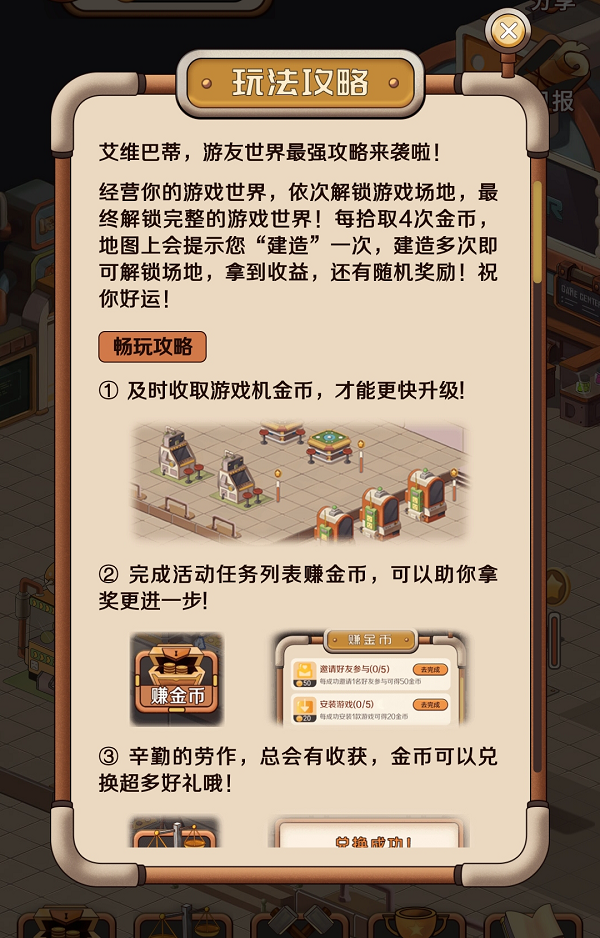 “游友世界”是一个简单的集金币解锁场地的经营小游戏,除了带给用户多元的游戏体验之外,还送出众多福利:用户可以通过解锁更多的场地来获得更多金币,并用金币兑换不同的奖励,包括游戏道具、花币、优惠券、实物等。