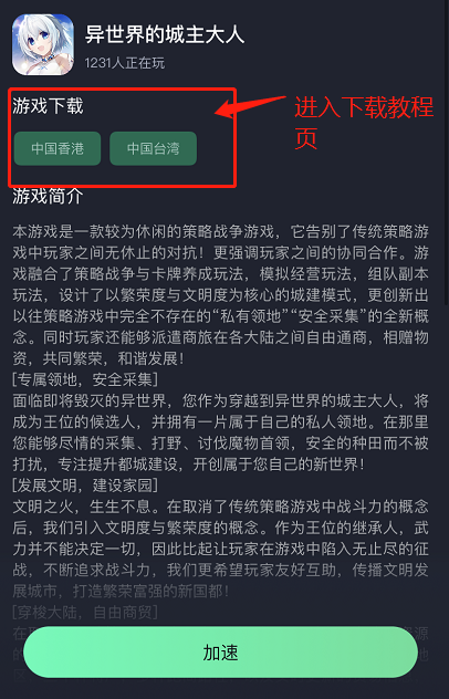 由于受到开放地区影响,只有港台地区的玩家才能在应用商店下载到异世界的城主大人手游。非港台地区的玩家也不用着急,可以在奇游直接下载游戏。