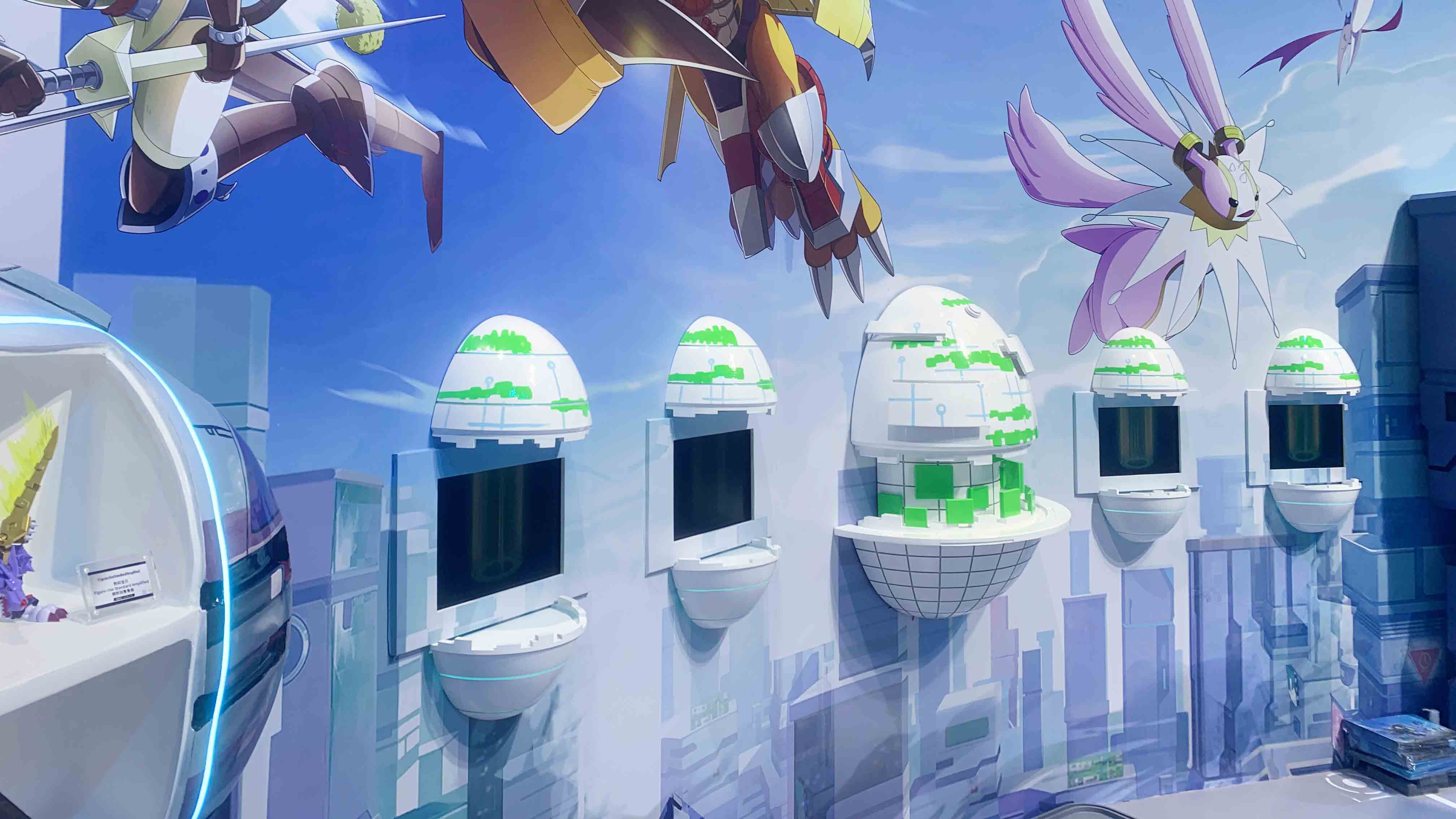 走进展区,首先映入眼帘的是非常壮观的数码蛋装置。巨型数码蛋被小数码单环绕着,坐落于展区最显眼的中心点。
