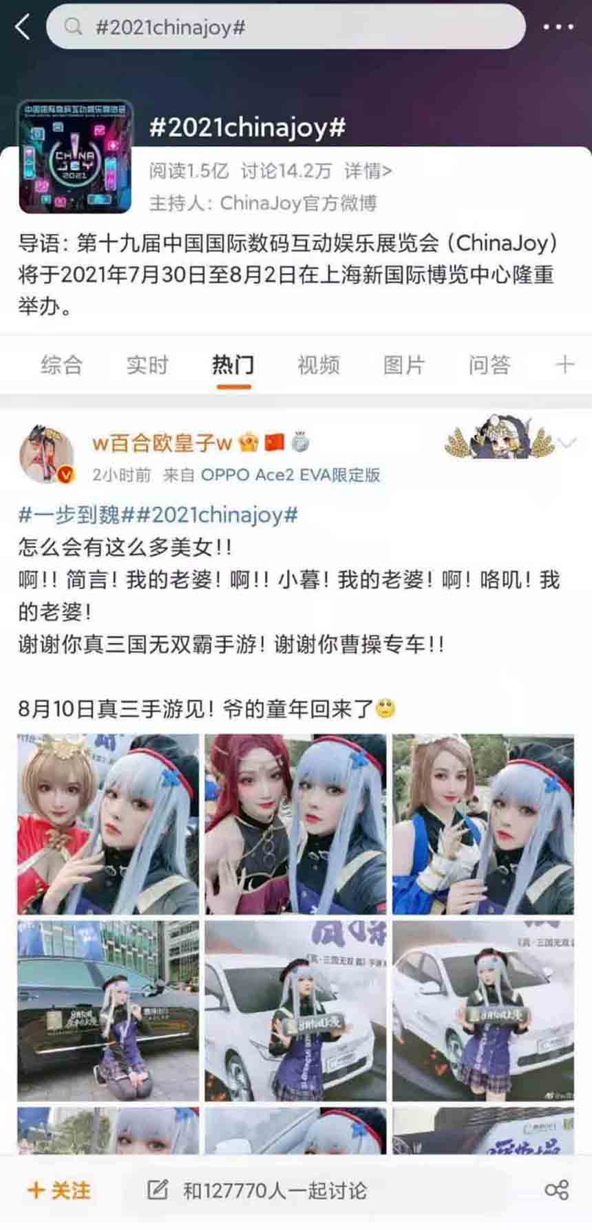 线上活动引来不少现场参展的玩家与Coser们纷纷参与互动,Coser们晒美图,玩家们则更多的被“一步到魏”的宣传语出动,话题“一步到魏”甚至一度攀升至微博热门。