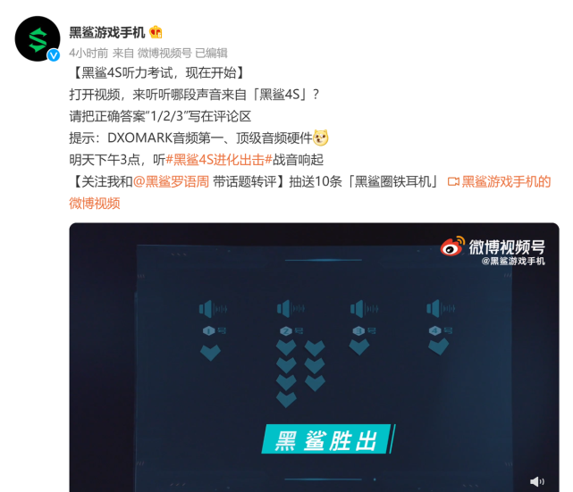 更为有趣的是,在新机发布前夕黑鲨官方将黑鲨4S与市面上主流的娱乐向手机进行了一次盲听实验,多名素人玩家对手机音质进行盲测,在不确定品牌型号的前提下选出声音效果最好的手机,而黑鲨4S则不出意外的获得了最多的票数。