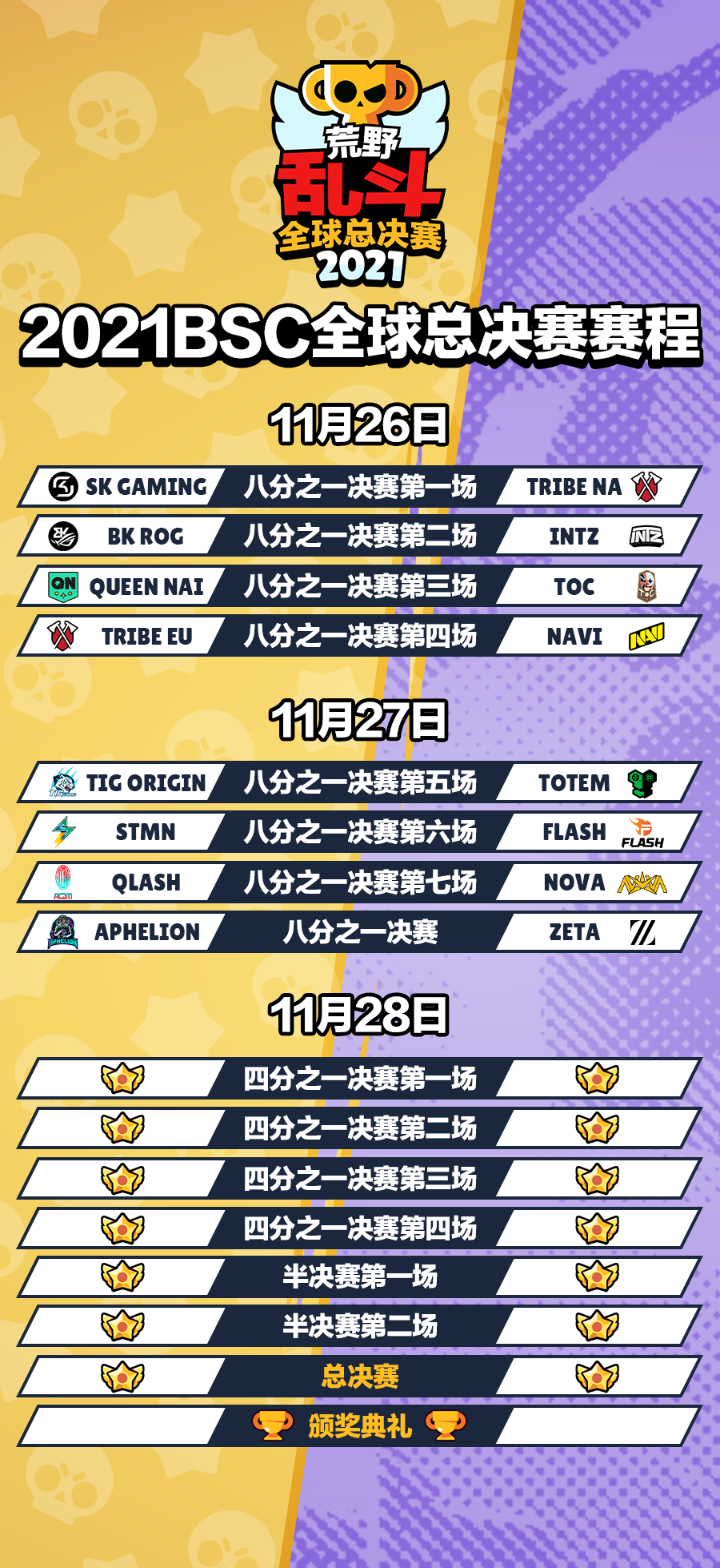 2021荒野乱斗全球总决赛对阵情况
