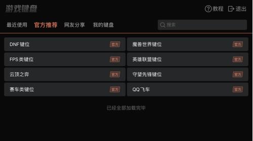 “官方推荐”里目前没有RTS类游戏默认键位,玩家在“我的键盘”中新建一个专属键位,或在网友分享里找找看其他玩家分享的键位设置。