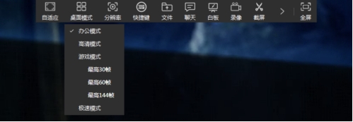 远控设置:向日葵游戏版最高支持144fps的画面刷新率,通过上方的“桌面模式”设置开启游戏模式。