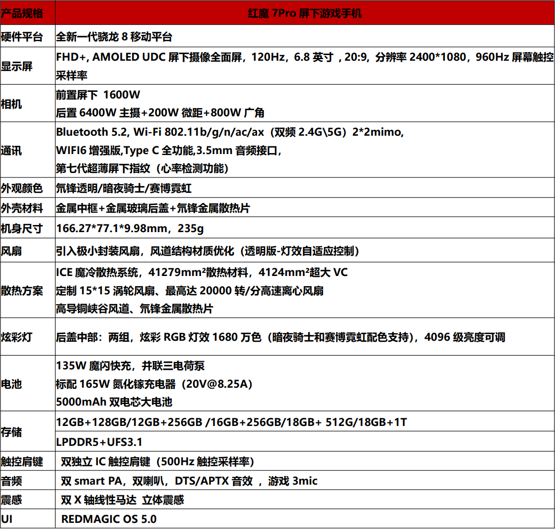 2022年又是手机行业拼杀大年,还处在虎年的正月里就开始有腥风血雨之势,红魔游戏手机7 Pro也要给今年的旗舰游戏手机做个标杆,秉承红魔特有的设计理念与调校策略,在性能、屏幕、散热、快充、操控多方面均有“行业首发”级别的顶尖配置,助力玩家获得持久而稳定的游戏体验。