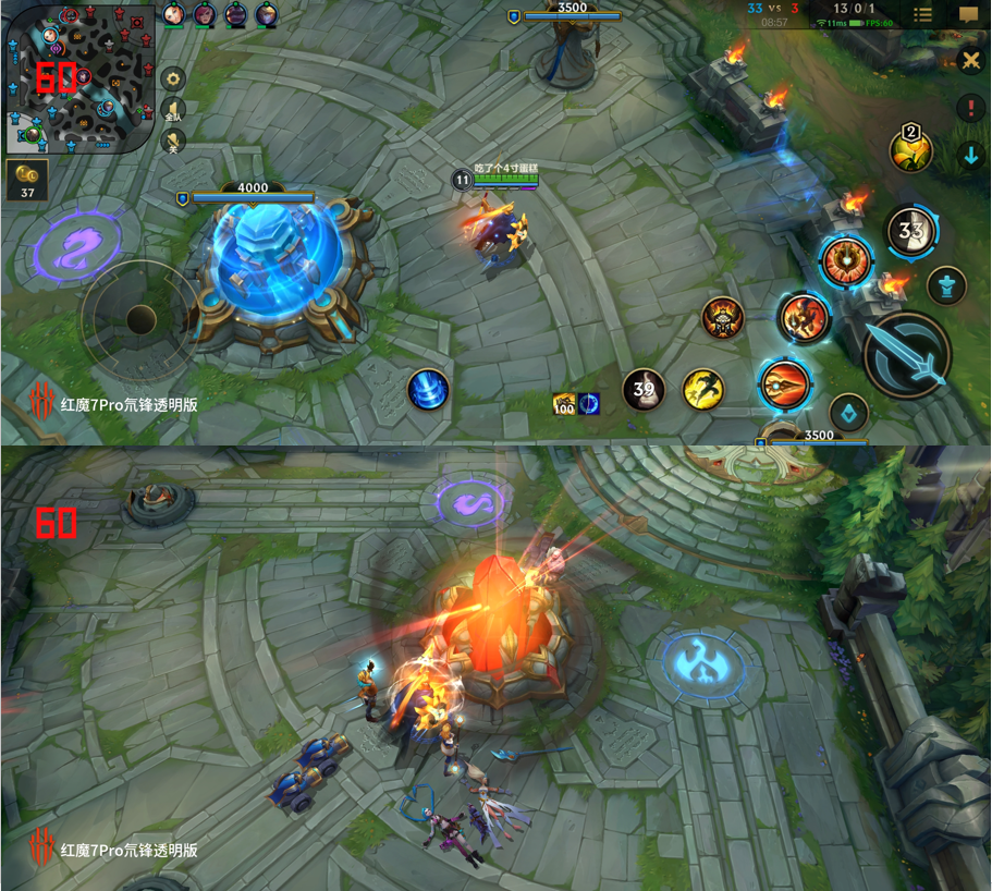 英雄联盟手游开启最高画质,十分稳定的保持在60帧,风扇开启的情况下,cpu温度保持在33.4℃。